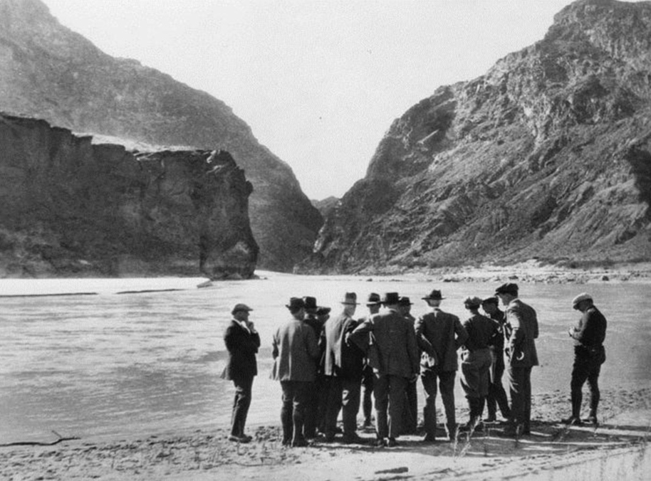 1922 meeting of the Colorado Commission on the banks of the Colorado River. US Bureau of Reclamation photograph”