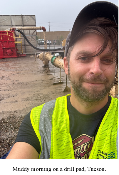 This internship gave me a better understanding of the more mundane aspects of hydrological work as well. I spent time in offices updating groundwater elevation maps and reading research papers and articles. I spent a muddy morning on a drill pad, under a tarp, trying to write down measurements on a soaked piece of paper. These experiences were as valuable as the rest as they provided insight into the less glamorous aspects of being a hydrologist. I have a better idea what kind of mental acuity and physical stamina is required by this profession.